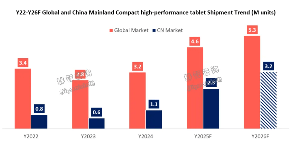 主要今年的小尺寸平板市场开始卷起来了,群智咨询预计,2025 年全球高性能小平板出货量将增长至 460 万台,同比增幅高达 45% 。