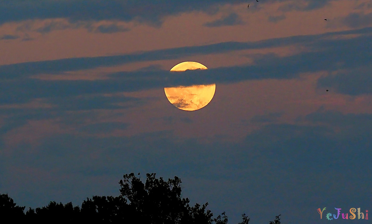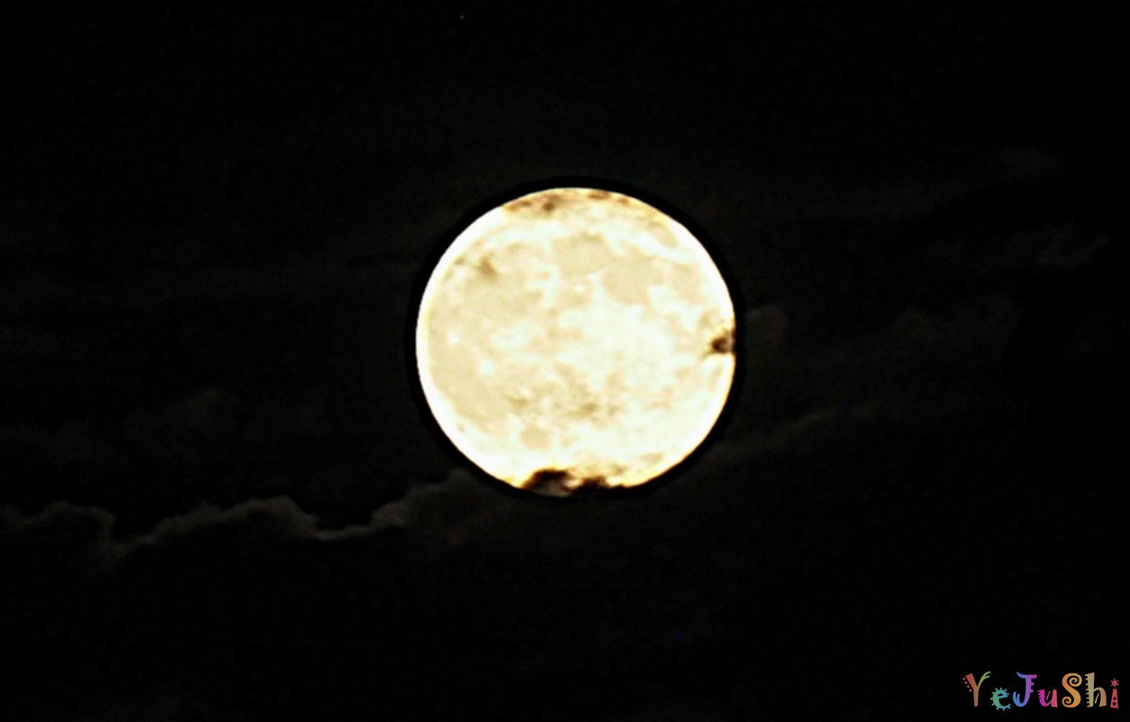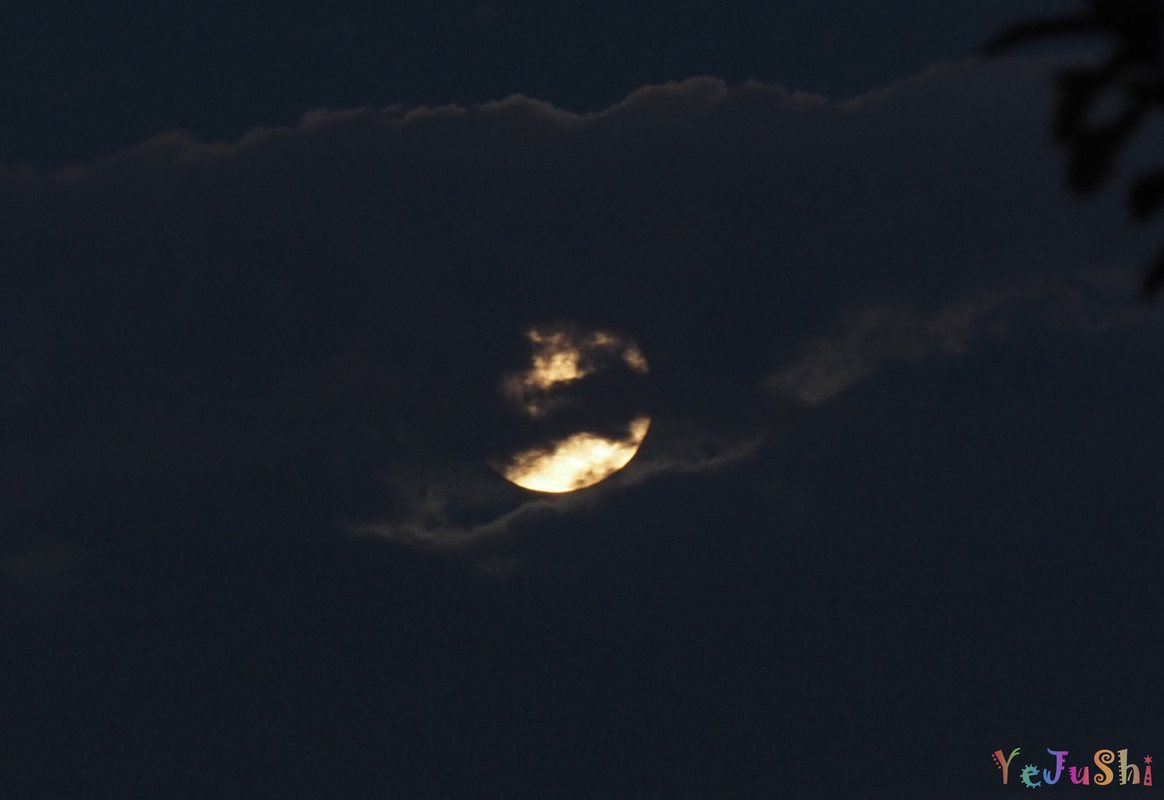 🌕 一轮半遮半掩的圆月藏在云层之后,云影流动,如轻纱拂面。
