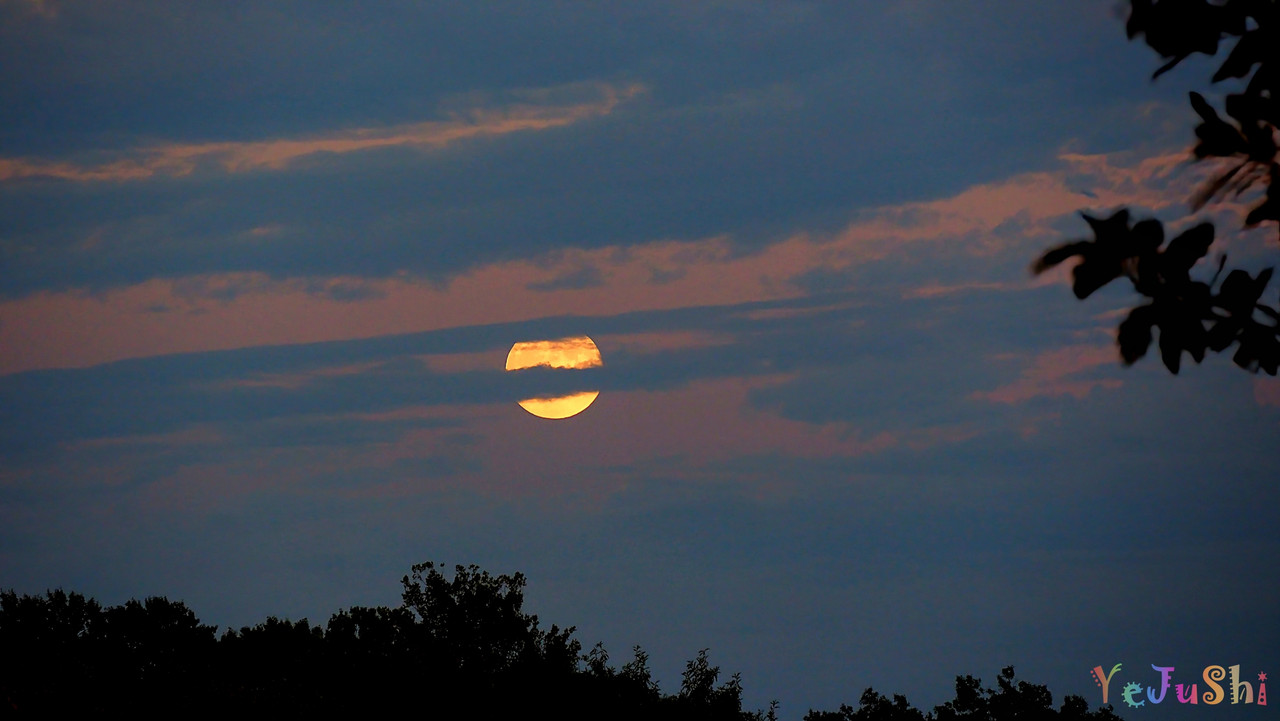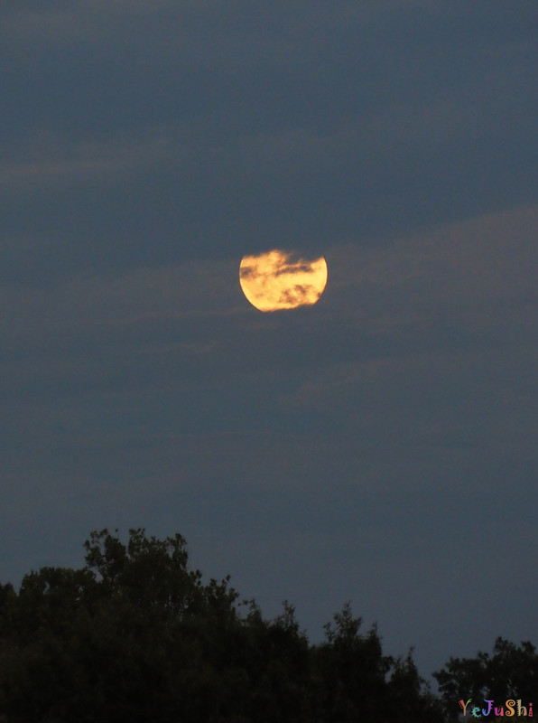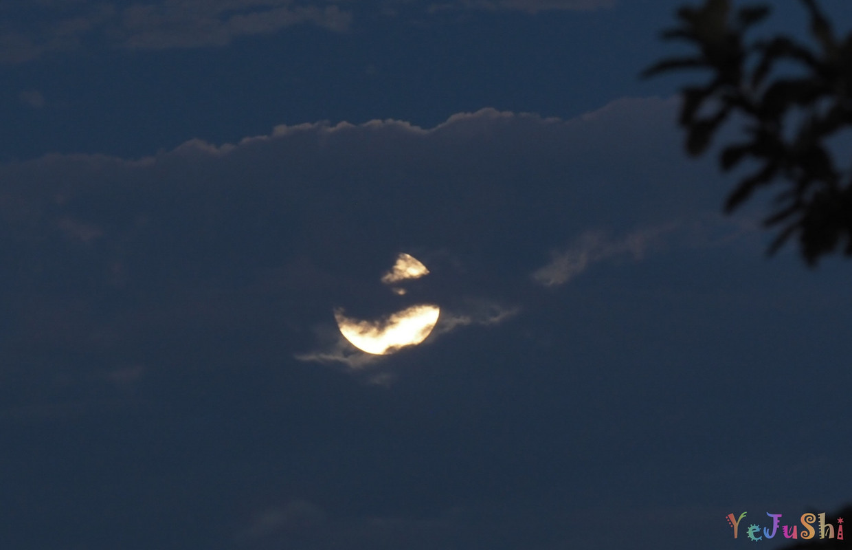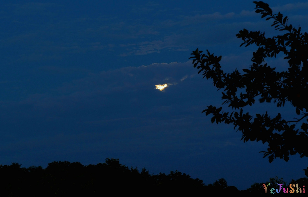 🌕 一轮半遮半掩的圆月藏在云层之后,云影流动,如轻纱拂面。