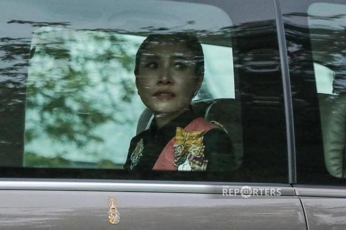 据报道称,她和母亲一起回到了家乡楠府(Nan)。而她们是乘坐皇家专车抵达帕塔查亨寺的,足以可见泰王拉玛十世对爱妃的宠爱。