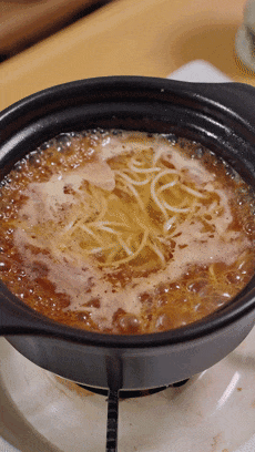 煮米线的汤别浪费,原汤化原食。再把之前煮过的米线放进去,小火慢慢地煮5分钟,既能收汁还能入味。