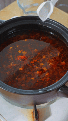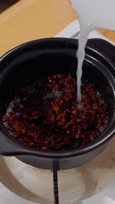 最后大火收收汁,感觉肉酱汤能挂在米线上了,直接上桌就行。