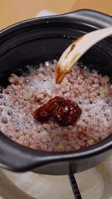 这里用的肉末你们可以稍微带点肥的,煸炒出油脂之后加上姜末、葱花就特别香了。
