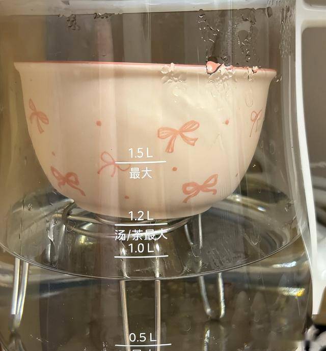 在养生壶里面放个架子,再把碗放进去,打入鸡蛋,加入清水,蒸一下,鸡蛋糕就蒸好了。