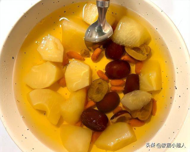 煮熟后苹果能吃,汤能喝,苹果酸酸甜甜的,姜多的话,汤会有点辣,坚持喝一段时间,皮肤真的会越来越好,大家可以试试。
