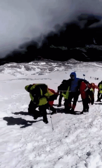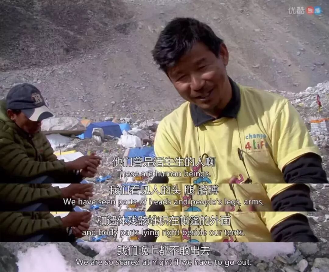 在视频中,可以看到珠峰清道夫纳姆伽尔,艰难地拖着一具遗体。