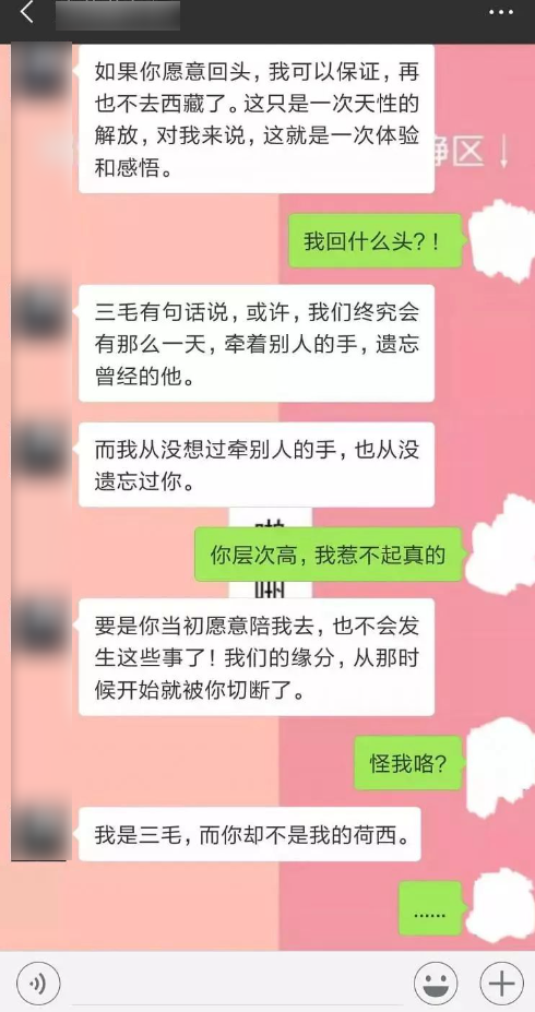 最后女友觉得没有去过西藏的男友,和自己不是同个层次的人:“我是三毛,但你不是我的荷西。”